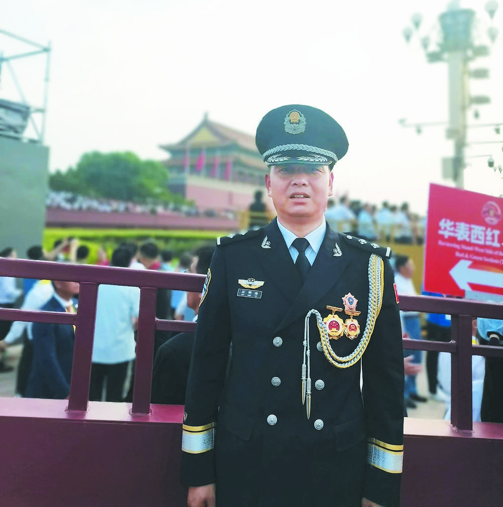 说起这次现场观礼,石明海的激动之情溢于言表,他说:“作为一名基层派出所民警,有幸受邀参加纪念中国人民抗日战争暨世界反法西斯战争胜利80周年阅兵仪式,在天安门广场现场观礼,感受祖国的繁荣富强和人民军队的威武强大,我感到无上光荣和自豪!曾经的我也是一名军人,军营教会了我责任与担当。而今,我成为一名警察,更懂得了人民公安为人民的千钧重量。在以后的工作中,我将继续带着军人的底色、怀着警察的赤诚,像坚守阵地一样坚守基层一线,用心用情为群众办好每一件事,以实际行动回报党和人民对我的褒奖!”