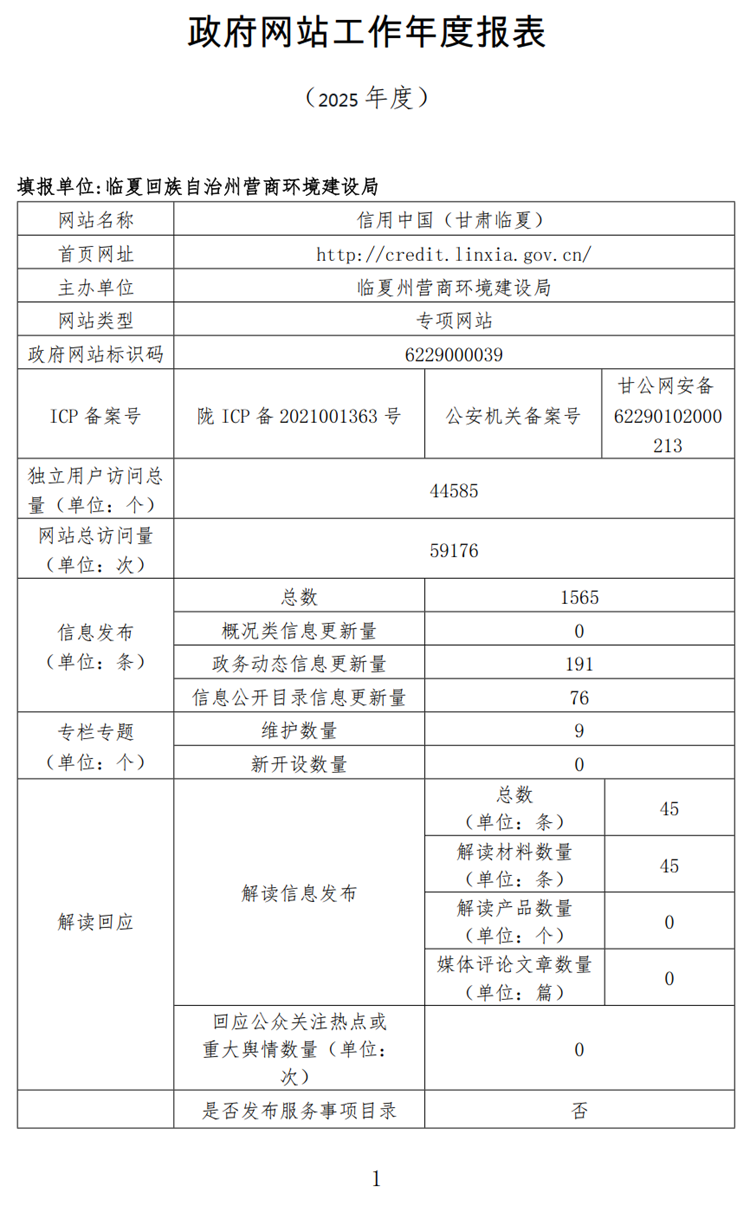 附件下载:2025年度信用中国(甘肃临夏)网站年报.pdf